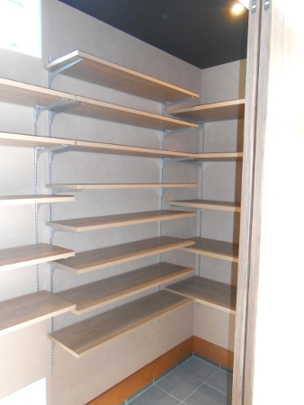 また、靴(シューズ)類以外の物も 収納できるよう、奥行き 45㎝ ある棚板が 取付いているところもあります。