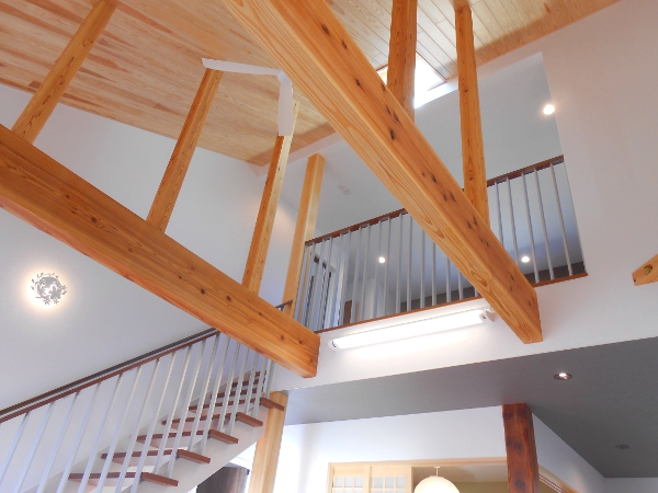 大屋根づくりの暗くなりがちなところを、トップライトでカバーしてあります。