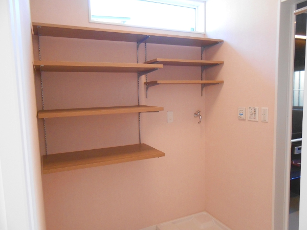 向かって右側に洗濯機のスペースが確保してあります。)と可動式の整理棚のみになります。
