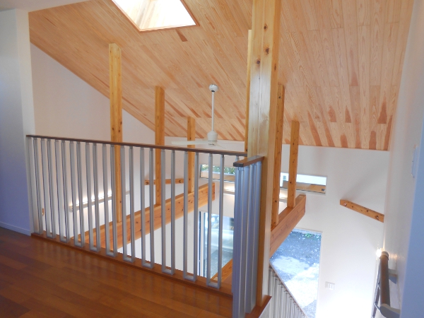 大変でした。オープン側の手摺用の子柱は アルミ製と、最近のデザイナーズ住宅に使われている素材も使ってみました。