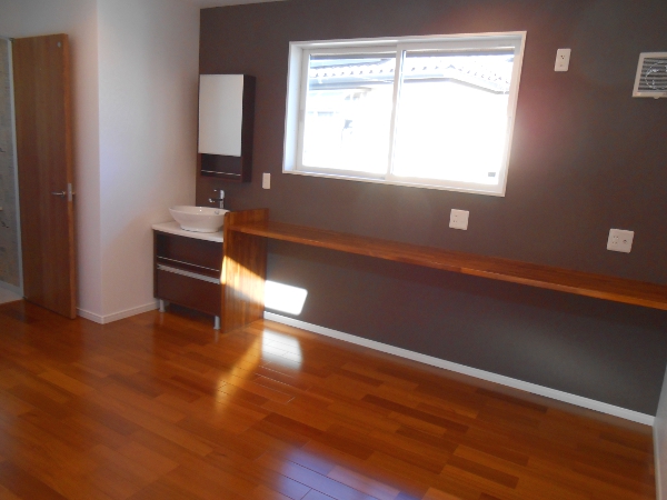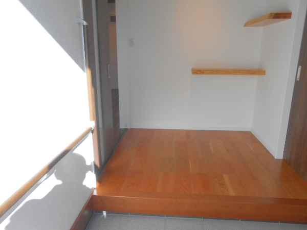 このスペースの床板は、玄関ホールと同じ ブラックチェリーにして 少し明るさを、
