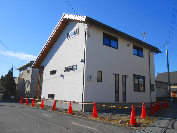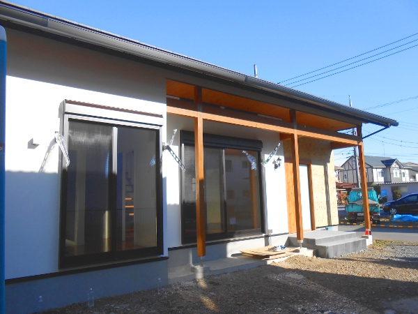 南側は、軒の出も多く(東・西・北は、法的な制約がありまして、ほんとはもっと出したかった)